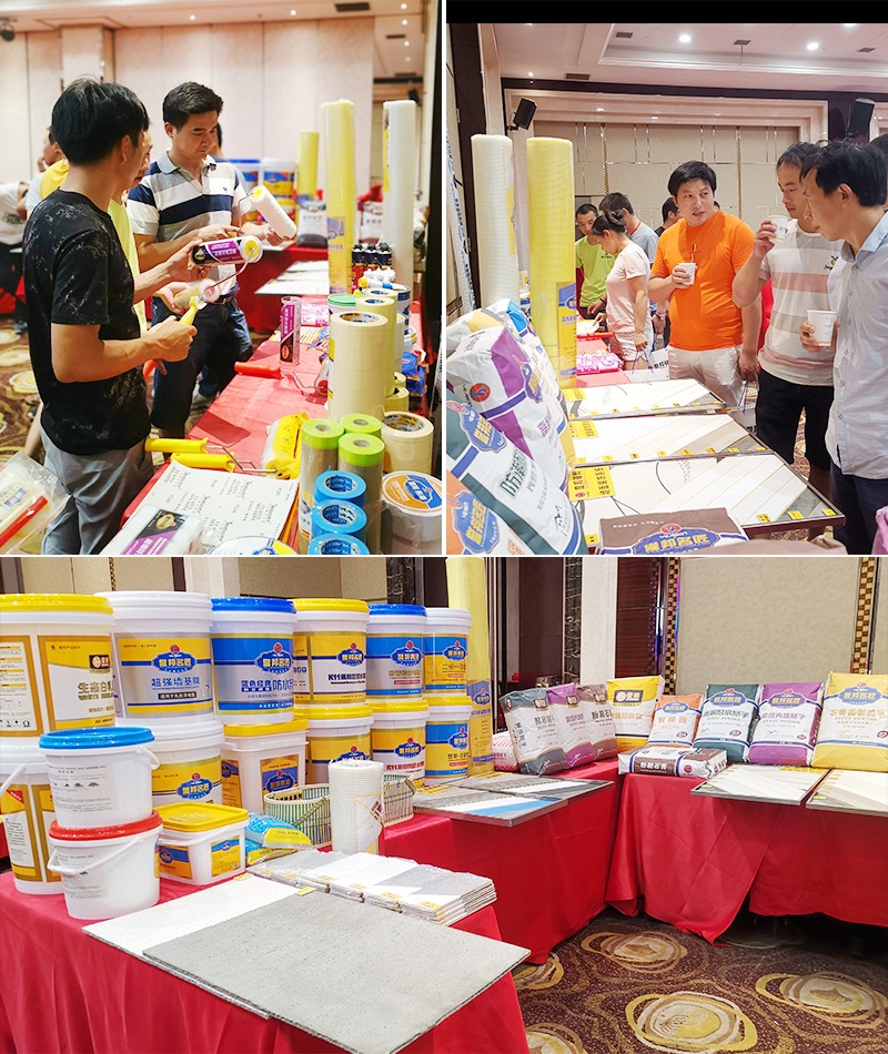 誉邦新材料科技有限公司工程师肖工详细介绍了誉邦名匠系列干粉腻子和防水、界面剂产品的性能特点、生产工艺、品控检测、相关案例等方面的内容。针对施工中遇到的问题,从使用方法、流程、注意事项等方面做了专题介绍,并针对常见问题进行有奖问答等活动,师傅们都踊跃参加,分享自己的知识和经验,让现场气氛持续升温。